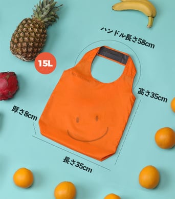 本体39gで約70Kgの荷物まで耐えられるという極薄エコバッグ。重い荷物を持つ時に手にかかる食い込みの負担を軽減する設計に。持ち手の部分には伸縮性のある素材を追加してた優れもの。 オレンジ・ブルー